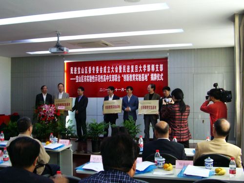 2010年11月5日,支部与宝山区重点中学民进支部联合举行了对口联谊签约- “创新教育实验基地”揭牌仪式。共建目的旨在通过支部之间的条块结合、交流,优势互补,促进中青年干部的培养,促进宝山基础教育与优质高等教育的对接和沟通,为不断提升基础教育质量创造良好条件,为提升本市教育水平建言献策。