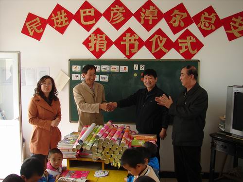 2010年10月9日,在总支名誉主委张建方同志的带领下,民进巴彦淖尔市总支向乌拉特前旗额尔登布拉格民族幼儿园捐赠价值三千多元的图书。