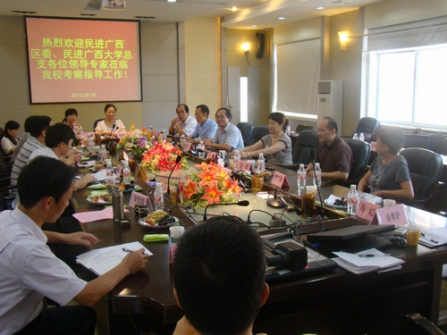 2012年5月18日民进广西区委会、民进广西大学总支领导、专家莅临钦州学院指导工作,受到学院领导、民进学院支部代表热情接待。