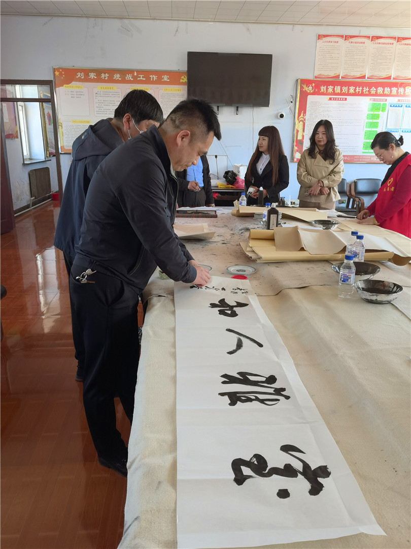 启动仪式后,“新时代文明实践服务▪建设幸福村屯”书画笔会活动正式开始,书法家们现场挥毫泼墨,多种书体,各显神韵,为刘家镇干部职工和村民送上了精美的书画作品。活动现场还进行了有奖问答,现场群众积极踊跃参加,答对者均收到书法家们的墨宝。活动现场热闹非凡,受到大家一致好评。