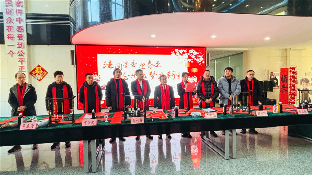 吴应书感谢民进榆树市委会送来的墨香文化与温情祝福,为新春增添欢乐与祥和。法院工作离不开社会各界的支持,希望民进榆树市委会、书法家及法院家属继续监督支持法院工作,共同推动习近平文化思想与法治思想走深走实。 此次活动丰富了法院文化生活,营造了喜庆氛围,促进了民进榆树市委会与法院的交流。大家表示,新年将以更饱满的热情投入工作,为经济社会发展提供司法保障。民进榆树市委会也将继续发挥优势,履行社会责任,助力基层文化建设,传承弘扬中华优秀传统文化,用实际行动为社会发展贡献力量。