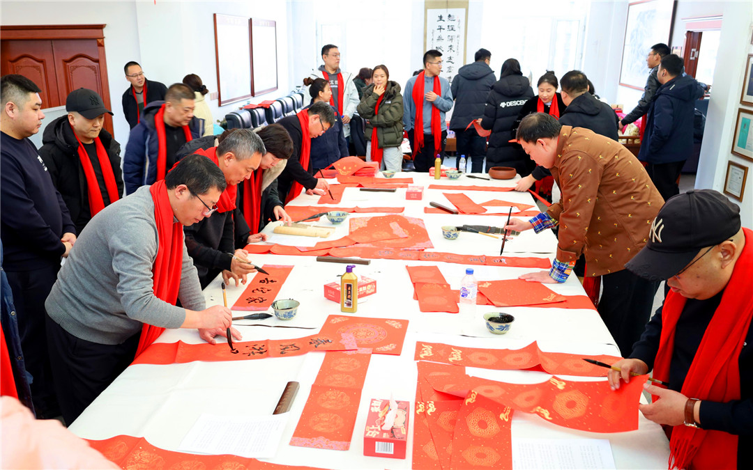 活动现场,王洪义为活动开笔,正式拉开写春联、送祝福的序幕。一副副饱含吉祥寓意的春联跃然纸上,一句句真挚美好的祝福传递到每个人手中,墨香四溢、暖意融融,让企业员工和民进会员深受感动、倍感鼓舞。