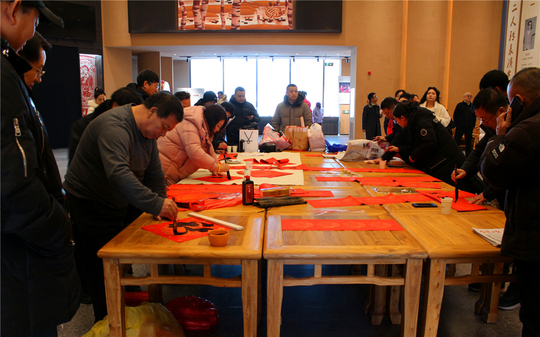 活动现场暖意融融、翰墨飘香。大红宣纸铺展有序,笔墨砚台整齐排列,吸引众多村民扶老携幼前来求取。“要副祝家人平安的春联!”“来个大气的福字!”村民需求质朴热切,书法家们挥毫泼墨,开笔送福,笔锋或刚劲或飘逸,楷、隶、行等书体各有韵味,现场氛围热烈。200多副寓意吉祥如意的春联和200多张大小福字,很快被等候在一旁的村民兴高采烈地领走。红彤彤的对联和福字映红了村民追求幸福、享受美好快乐生活的笑脸,村民们收到市委会送出的新年美好祝福倍感幸福。