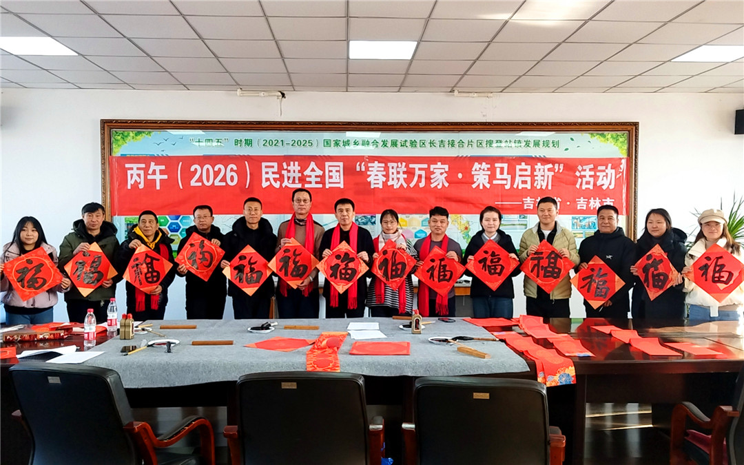 岁末迎新,墨香送福。1月29日,丙午马年新春将至,民进吉林市委会、民进吉林市开明书画院、民进吉林市委会经济委员会联合开展“春联万家·策马启新”文化惠民活动,走进吉林市搜登站镇政府,将新春美好祝愿化作一副副春联、一个个福字,为镇政府工作人员及周边群众送上浓浓祝福。
