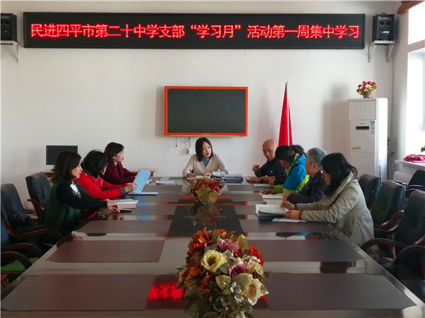 为贯彻落实民进吉林省委会、民进四平市委会《2019年基层组织建设主题年工作方案》精神,民进四平市第二十中学支部积极响应市委会号召开展支部学习月活动,于4月1日下午在学校小会议室开展了学习月第一周集体学习活动。活动由支部组织委员张玉玲老师主持。
