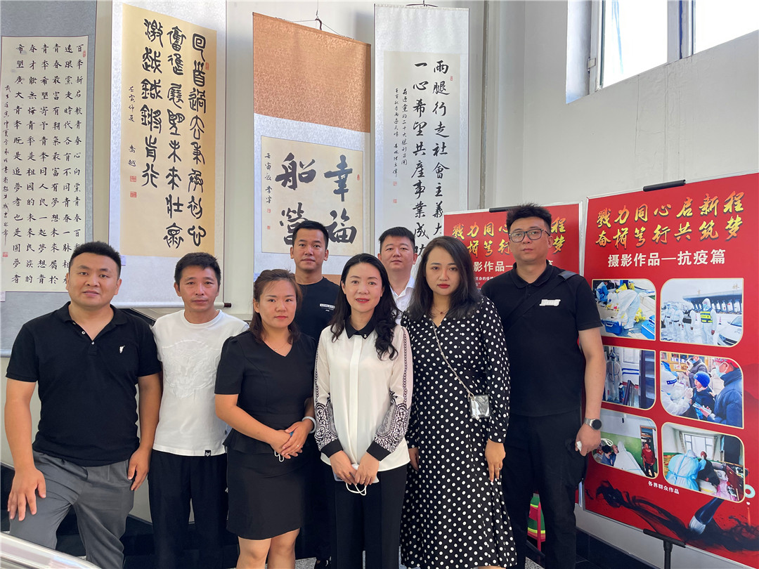 8月17日,吉林市船营区政协副主席、民进船营区基层委员会主委黄豫带领民进会员参观了喜迎党的二十大书法绘画摄影作品展览。