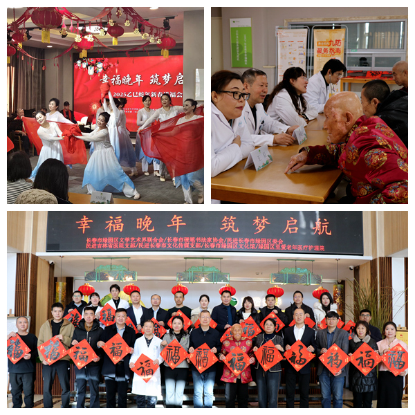 1月17日,民进长春市绿园区委会联合民进吉林省医院支部、民进长春市文化传媒支部、长春硬笔书法家协会、长春市绿园区文联、长春市绿园区文化馆等单位在绿园区至爱老年医疗护理院共同举办“幸福晚年 筑梦启航”2025乙巳蛇年新春送福会暨“春联万家·大道同行”活动。 民进长春市委会专职副主委邹德涛、秘书长李非,长春硬笔书法家协会常务副主席王洪,民进省医院支部主委李晨玉,绿园区文联副主席刘刚,绿园区文化馆馆长冯立军,民进绿园区委会主委胡博与宽城、经开等区委会主委参加了活动。 至爱老年医疗护理院党支部书记、院长台丽伟对民进组织和绿园区各单位的到来表示热烈欢迎,并陪同大家参观了养老院。 书法家们挥毫泼墨送春联和福字,医生们现场义诊,群众包饺子、开联欢会,共迎蛇年春节。104岁老人也提笔写福,传递健康长寿祝福。省医院医生耐心解答老人健康疑问。民进会员与养老院员工共包饺子,氛围融洽。文艺演出精彩纷呈,独唱、集体舞等节目赢得阵阵掌声,91岁老人即兴赋诗,7岁儿童发声献唱,老少呼应,寓意人生旅程美好。 胡博表示,至爱老年医疗护理院是民进绿园区委会社会服务对象之一,关注老年群体是绿园民进的具体实践,此类活动将长期坚持下去,为和谐社会贡献力量。