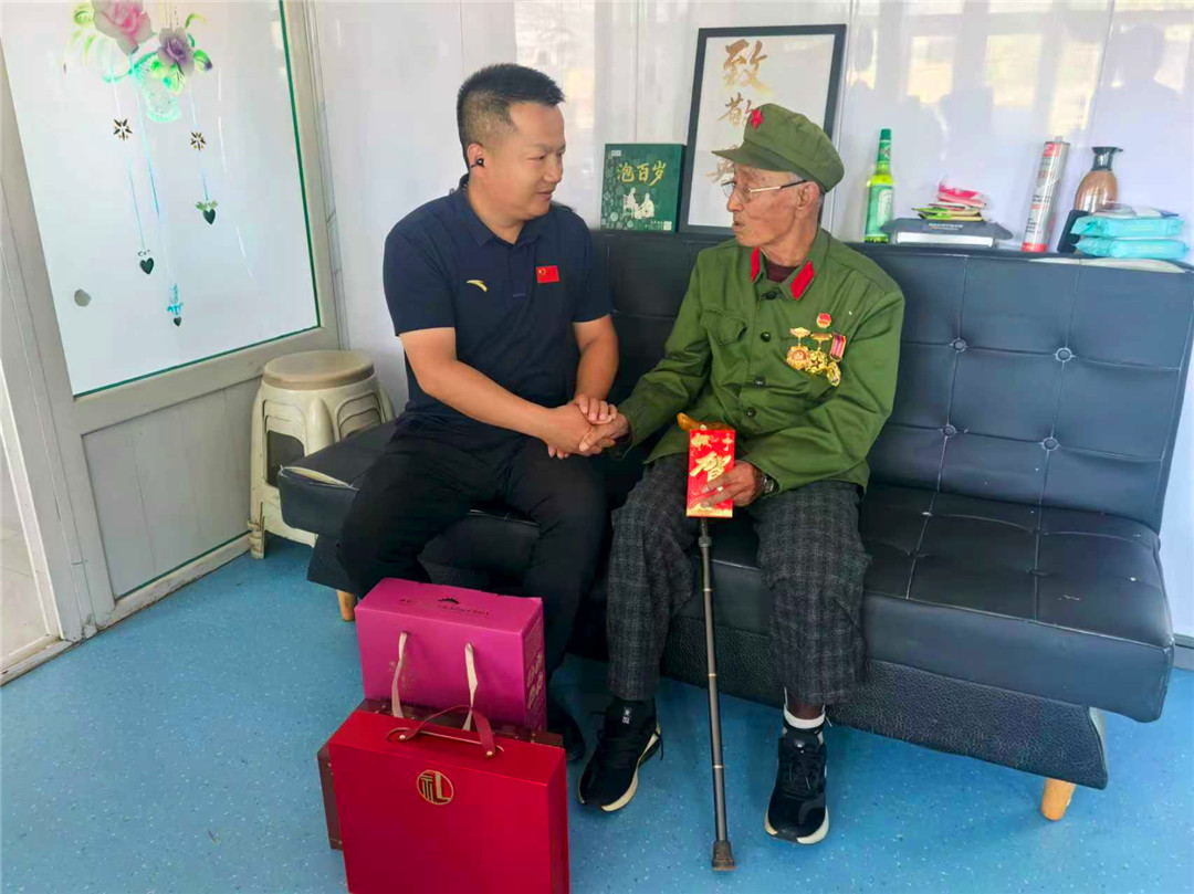 刘铁军与老人亲切交谈,关切询问其身体与生活状况,对老人为国家和人民的牺牲奉献致以崇高敬意与衷心感谢。他表示,老兵是国家的英雄功臣,奉献牺牲精神将永载史册、激励后人,还叮嘱老人保重身体。