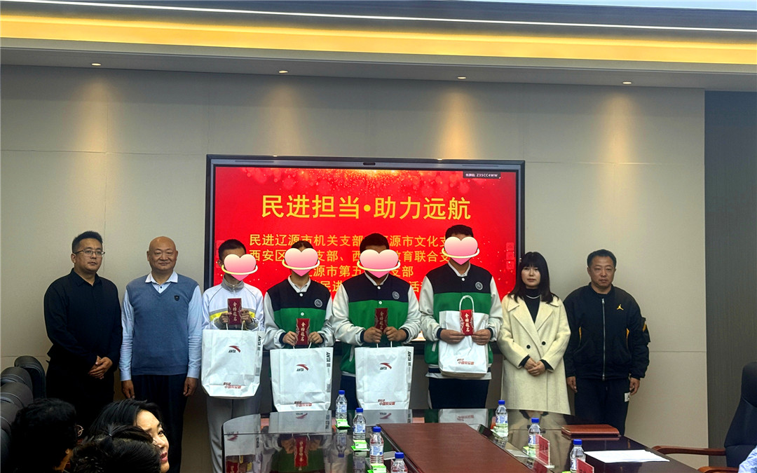 姜海波对辽源民进的爱心之举表示感谢。四位学子上台接受爱心物资,民进四个支部会员代表现场完成捐赠。贾宝霞强调“教育是国之大计,少年是民族希望”,鼓励学子不负关怀、学业精进,并表示辽源民进将持续关注教育、助力学子成长。