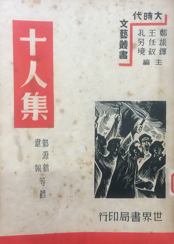 “大时代文艺丛书”由世界书局在1939年7月出版。计划出版十二种,已经登出预告了,最终却只出版了十一种:1.理论《实证美学的基础》,(苏)卢那卡尔斯基著,齐明(陈望道)、虞人译。2.小品杂感集《繁辞集》,容庐(王统照)著。3.杂感随笔集《横眉集》,孔另境、王任叔等著。4.论文《扪虱谈》,巴人(王任叔)著。5.散文与诗《松涛集》,白曙、石灵著。6.创作《十人集》,郭源新(郑振铎)、韦佩(王统照)等著。7.创作《掠影集》,柯灵著。8.长篇创作《突围》,王行岩著。9.长篇译作《孤独》,(苏)N.微尔塔著,冯夷译。10.长篇译著《和平》,(德)格莱塞著,屈轶(王任叔)译。11.五幕悲剧《当他们梦醒的时候》,石灵著。预告中提到的剧本三种《法国革命三部曲》没有出版,广告上没有留下著译者姓名,现在也无从考查。尽管如此,在那艰难的环境里,这套丛书出版了十一种,真正显示了“孤岛”文学的实绩。