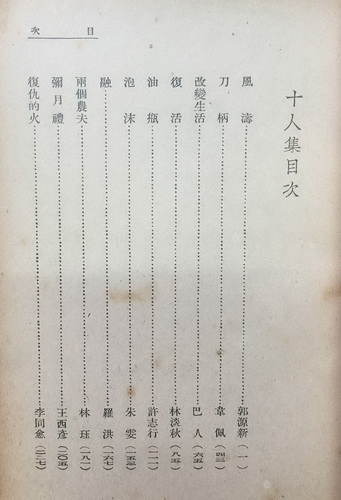 郑振铎信中说“弟的‘小说’颇想能在一星期内赶写出来。大约也是‘历史’的短篇”,这“历史短篇”即《十人集》首篇的《风涛》,署名“郭源新”,是郑振铎的笔名。这篇《风涛》在是年6月15日赶写出来,是郑振铎时隔多年后创作的一篇历史小说,写明代后期东林党人与魏忠贤集团的政治斗争。小说歌颂了爱国者舍生忘死与权奸斗争的精神,其现实讽喻性是很明显的(陈福康语)。