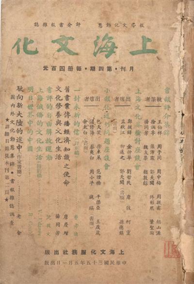 这些民进文艺界的前辈,在上海抗战胜利之初的地位不容小觑。举个例子,上文所述的《上海文化》月刊,经常举办座谈会,邀请名人座谈文化界情况。民进前辈经常受邀参加。以该刊第4期刊登的有关上海文化界座谈会的报道为例,出席的前6位都是民进前辈。
