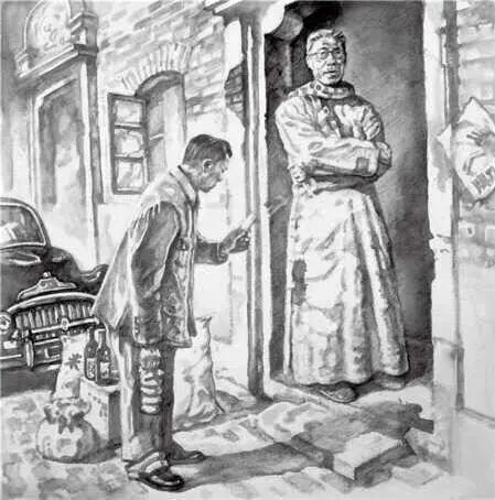 油画《马叙伦拒收汉奸之礼》,胡子婴绘