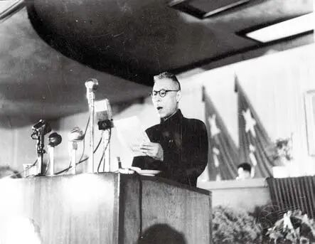 1949年9月,中国民主促进会首席代表马叙伦在中国人民政治协商会议第一届全体会议上发言。