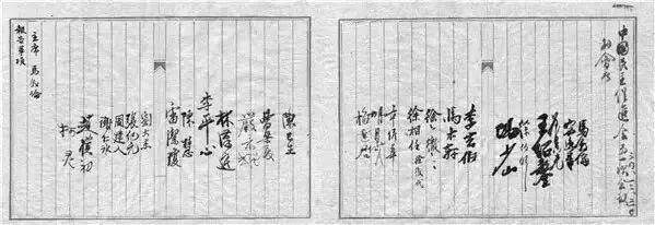 1945年12月30日,中国民主促进会成立大会签到名单。