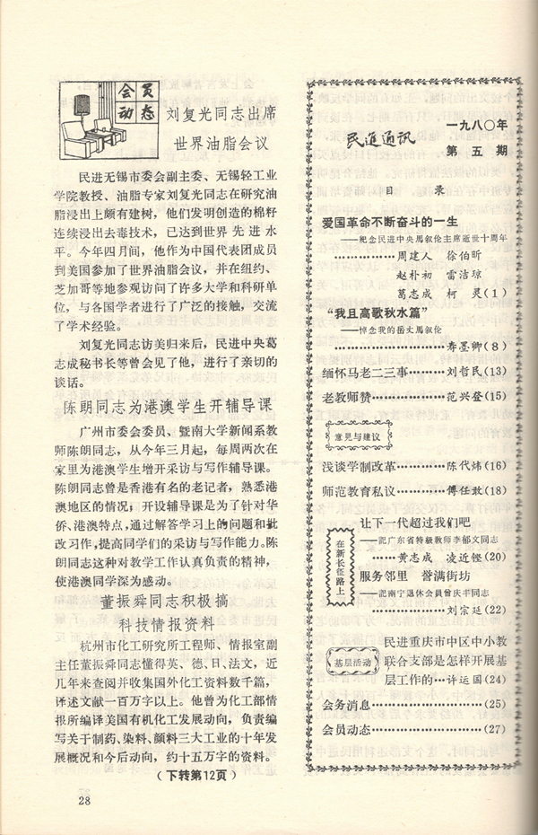 1980年《民进通讯》会员动态栏目资料整理