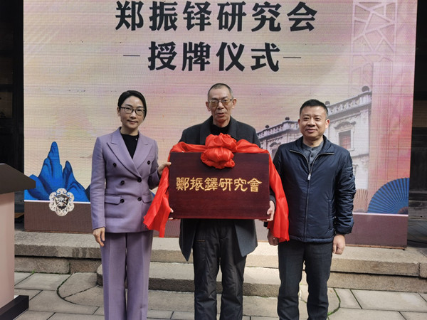 2月18日上午,郑振铎研究会在鹿城区郑振铎纪念馆举行成立仪式,该研究会从事温州乡贤、著名作家、学者郑振铎相关的文学、历史、文物考古等方面的研究,让郑振铎的爱国精神、学术风范与文化遗产能得到更好弘扬。郑振铎嫡孙郑源、郑振铎嫡曾孙郑炜昊到场祝贺。据了解,这是全国首个郑振铎研究会。