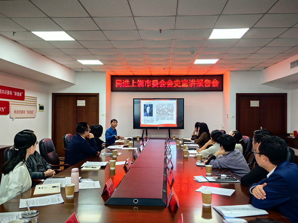 为推动会员学习和宣传会史,继承和弘扬民进优良传统,10月31日,民进上饶市委会举办会史宣讲报告会,特邀市委会原副主委施双江作宣讲,市委会主委张庆国,副主委梁丽娟、王平喜、柴莉萍、姜开桦,秘书长陈智贞,市委会委员、会内的市政协委员、骨干会员代表共计20余人参加报告会。