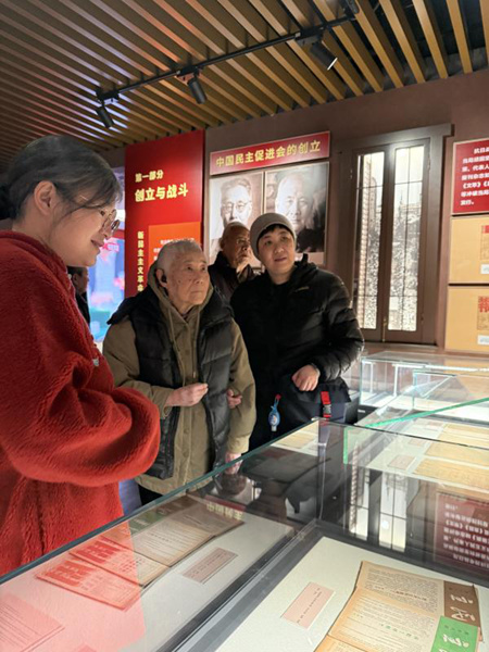 2月6日下午,马叙伦同志女儿马珮等后人、亲属一行参观了位于民进中央机关的民进会史展览,民进中央副主席高友东亲切会见马珮一行。
