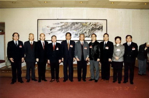 民进第十届中央委员会领导集体合影,左四为梅向明。