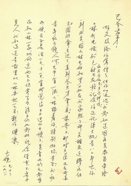 1986年冰心致巴金的一封信 中国现代文学馆 藏
