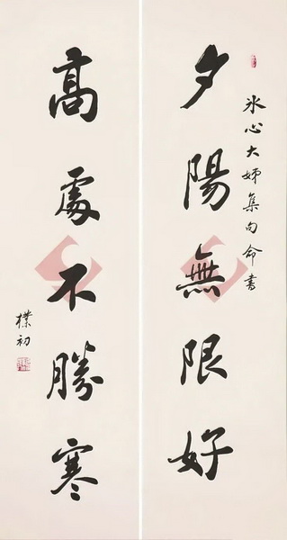 赵朴初书法短对联“夕阳无限好,高处不胜寒”,冰心捐赠 中国现代文学馆 藏