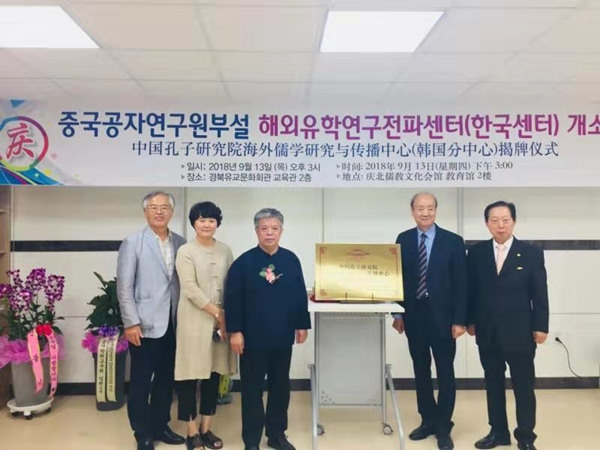 杨朝明(左三)在韩国参加揭牌仪式