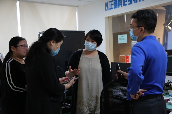 (左三为梁雪菊老师在指导团队录制网课)