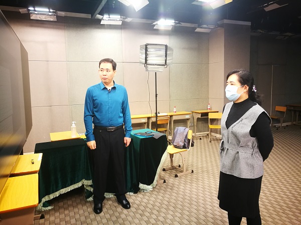 (右为刘燕老师在指导网课录制)