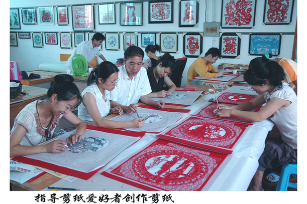 “剪纸既是一门‘易学’的技艺活儿,却更是一门‘难精’的民间艺术,它不仅要求热爱剪纸的人有着一双灵巧的手,更要有着一双锐利的慧眼和对艺术孜孜以求的精神。”即将结束我们的谈话时,陈杵保讲出了从事剪纸艺术教学多年的体会。