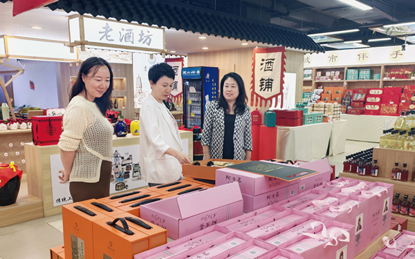 调研组一行考察了辽阳名优特产馆的商品种类、特色优势以及销售现状,并与辽阳市旅游商品产业商会会长马文丽、秘书长徐慧娟进行深入座谈。座谈中,双方聚焦特色产品标准化生产、区域公用品牌建设以及辽阳特产如何“破阵出圈”等重点难点问题展开交流,共同探讨推动特色产业提质增效的路径与方法。