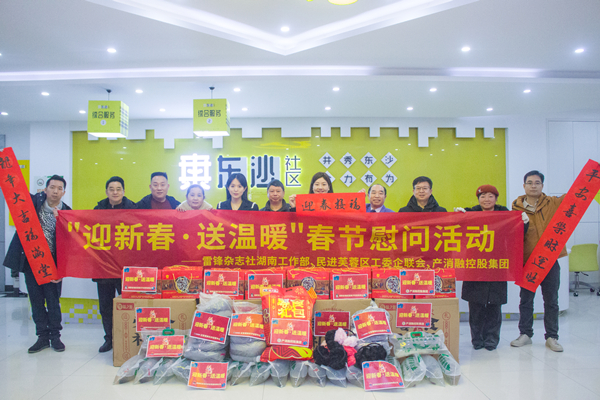 在新春佳节来临之际,民进长沙市芙蓉区工委企联会携手雷锋杂志社湖南工作部、产消融控股集团一起走进长沙市芙蓉区东湖街道东沙社区、湘湖街道东湖社区开展献爱心送温暖活动。