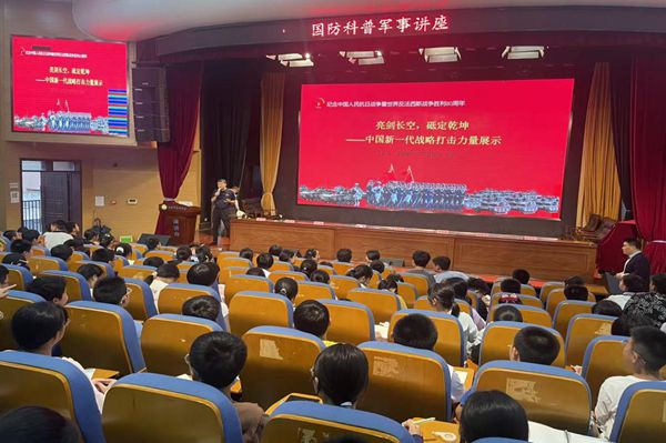 活动吸引了近三百名师生参与,现场气氛热烈,张禾以其深厚的专业知识和生动的讲解风格,从九三阅兵的宏伟场景切入,系统梳理了中国战略打击力量的发展脉络。他从历史性技术突破、现代化装备体系,讲到未来发展趋势,结合阅兵中亮相的“大国重器”影像与前沿案例分析,将高精尖的国防科技知识转化为通俗易懂的科普内容。这不仅是一次知识的传递,更是一堂科技赋能下的爱国主义教育课,展示了人民军队背后的创新智慧与技术自信,引导听众从震撼的“阅兵场”步入奇妙的“科学场”。