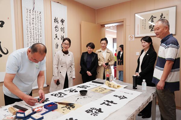 本次活动省市县三级联动,精准对接基层需求,为“残疾人之家”的学员带来了剪纸、手工干花相框制作、“一对一”书法指导等特色课程。在书法室,民进会员、市书协会员叶良中向王安静介绍了陈建勇从一名受助学员,成长为瓯海区书协会员和社区书法教师的成长经历。王安静在观摩陈建勇的学习成果后,对市委会的扎实工作给予充分肯定,称赞市委会“实实在在做帮扶,真真切切送温暖”。
