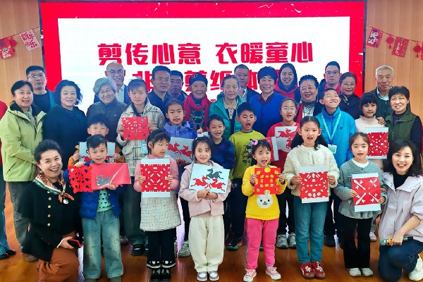 活动中,青岛大学退休志愿者协会副会长顾晓梅教授为孩子们带来非遗剪纸展示,讲解剪纸的文化内涵与基本技巧。孩子们认真聆听、动手实践,现场充满了欢声笑语。
