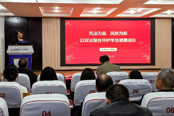 胡耀华立足教育教学实际,结合真实案例,细致阐释了教育惩戒边界、学生权益保障及教师依法履职的自我保护要点。同时,结合即将实施的《中华人民共和国民族团结进步促进法》核心精神,引导教师深刻领会“各民族一律平等”的内涵,将民族团结理念融入教学全过程,尊重不同民族学生的习俗与差异,筑牢校园民族团结防线。