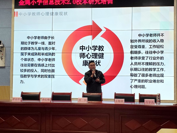 在金鸡小学报告厅,国家一级(高级)心理咨询师肖学禹就小学教师自我心理调节与留守儿童心理处置教学等课题进行分析指导,引导教师缓解职业压力,循循善诱地告诫他们要随时保持理智、保持冷静,积极培养健康、阳光的心态,用积极的情绪、阳光的心态去面对学生、家长及工作中的困惑,做自己情绪的主人。参加讲座的教师们纷纷表示,活动非常及时,收获颇多,受益匪浅。