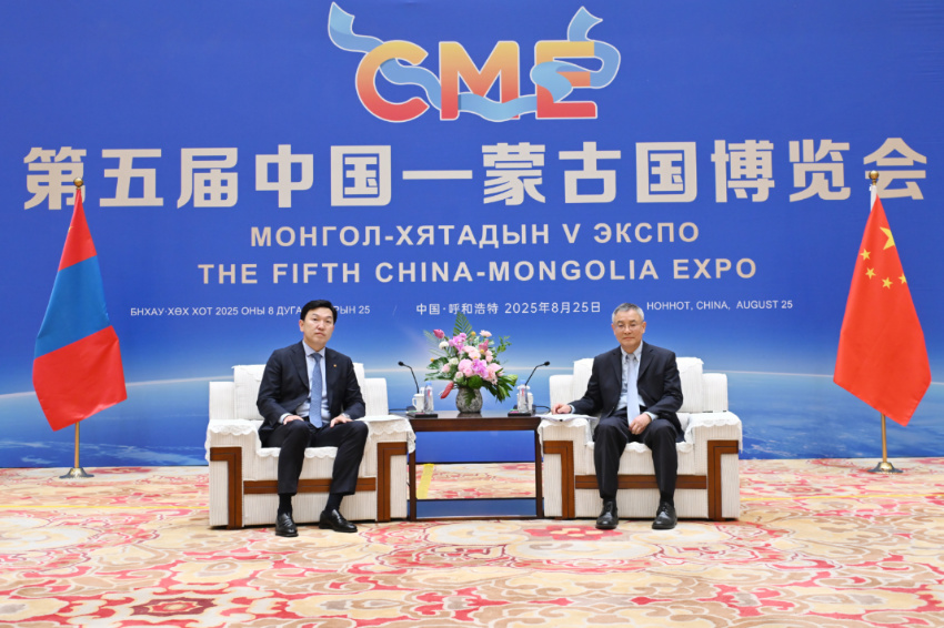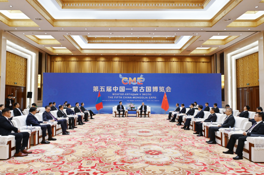 8月24日,全国人大常委会副委员长、民进中央主席蔡达峰在呼和浩特会见前来出席第五届中国—蒙古国博览会的蒙古国第一副总理兼经济发展部部长乌其尔勒一行。