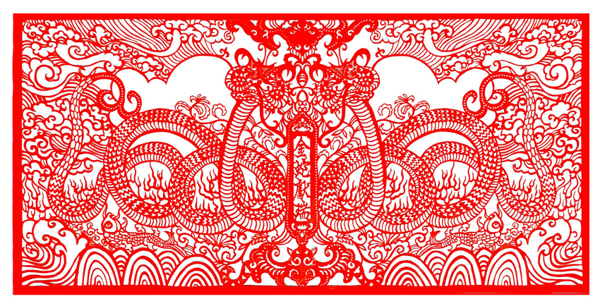 唐柏林:金蛇献瑞(单色剪纸 136×66cm)