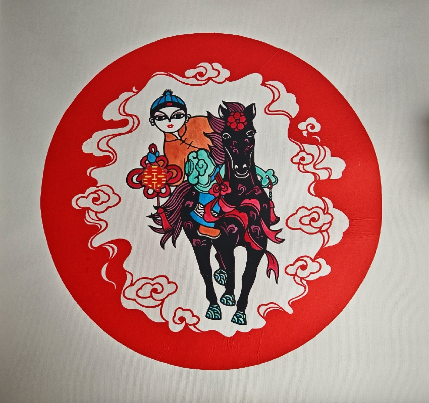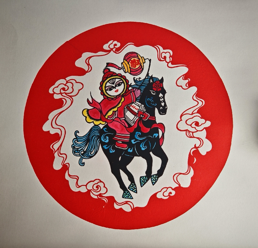 张艳华:马踏祥云驮福至(剪纸)