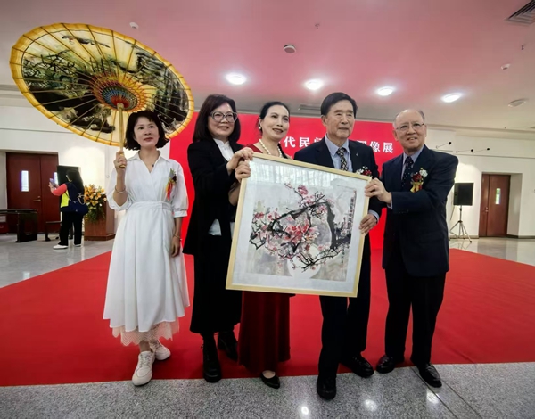 活动汇聚了台湾近60位协会负责人与艺术家,夏瀛州先生及夫人秦立锦女士便是其中代表。当我双手捧上精心创作的《梅花图》,赠送给夏瀛洲及夫人,“墙角数枝梅,凌寒独自开”的题字映入夏先生眼帘,他指尖轻触画面的瞬间,眼底泛起的光让我心头一暖。那光里,是彼此读懂的坚守:是他毕生秉持一个中国原则、以文化为桥推动统一的笃行,更是两岸艺术家对中华文脉共同的守护与传承。