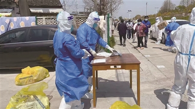 ▲接到紧急通知后,民进合肥包河二支部会员经过一夜奔波,到达目的地上海市闵行区吴泾镇,直接投入一线核酸采样工作。