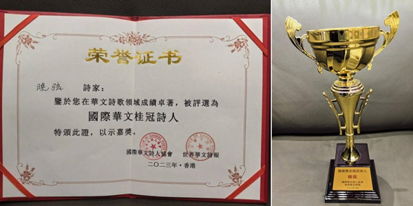 据悉,期间正值香港《世界华文诗报》创刊30周年庆典,由国际华文诗人协会联合高校专家学者组成评委,在全球范围内五大洲的17个国家和地区,共评选出30位国际华文桂冠诗人,晓弦为浙江省唯一。