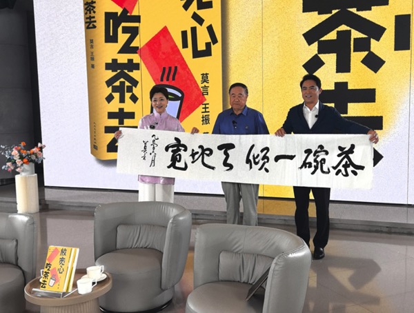 近日,诺奖得主莫言与王振共创的随笔集《放宽心,吃茶去》在莫言抖音直播间正式首发。莫言、王振和主持人杨澜一起畅谈这部从真实生活中来的随笔集创作背后的点点滴滴。