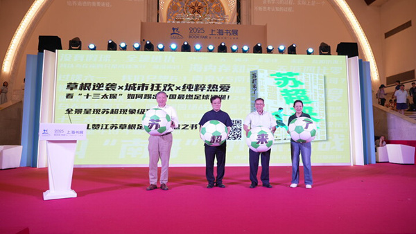 上海书展素有全国出版界“风向标”的美誉。8月18日傍晚,2025“凤凰人文之夏”主题活动暨《苏超来了》新书发布会在上海展览中心举办。现场,沪上著名作家孙甘露、赵丽宏与江苏出版人手持硕大的“足球”,为这部首次全景式反映江苏省城市足球联赛的纪实读物激情“开球”,瞬间“引爆”了现场。