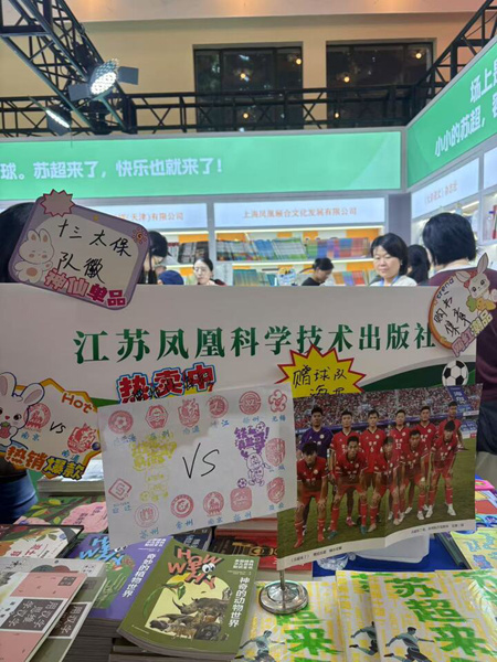 “我周末刚从南京观赛回来,没想到在上海书展又邂逅了‘苏超’,真的特别亲切激动。”在上海工作的常州女孩卢小姐说,“自从‘苏超’开赛以来,我经常在朋友圈分享赛事信息、给家乡增加曝光度。感谢‘苏超’,让‘十三太保’每个城市的名字和形象都清晰起来。”