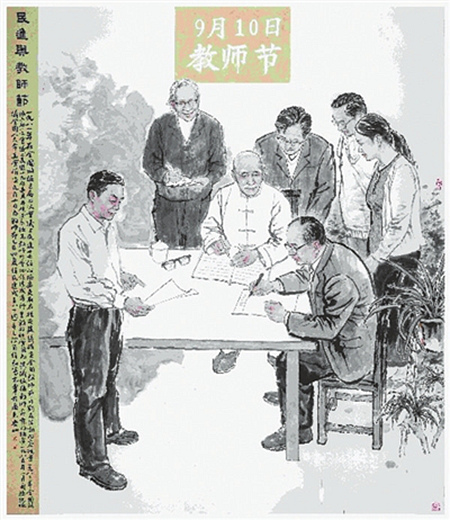 用画笔还原尊师历史 中山画家肖伟作品《民进和教师节》献礼民进80华诞
