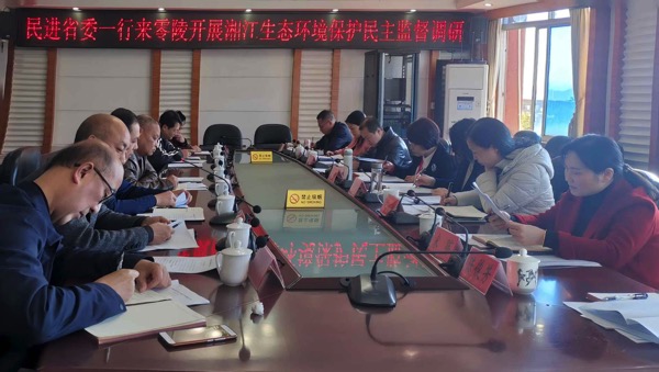 2021年11月,民进湖南省委会副主委李平(右四)率队到永州市零陵区开展湘江生态环境保护民主监督调研并召开座谈会。