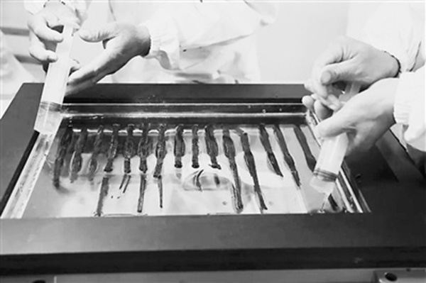 “简牍出土时大部分是饱水状态的,但有些简牍出土后却干缩得像卷曲的头发丝一样,加固过程中我们需要用化学药剂对简牍进行润胀复形,使其基本恢复到同批饱水简牍的状态。这个过程中,简牍如同伸了一个懒腰,变直了。”江西省文物考古研究院相关专家介绍,在进行清洗揭剥时,他们要将粘连简牍一根根剥离开。因简牍已经散掉,揭剥过程中还要注意前后次序、上下叠压关系。因此,仅这一揭剥环节,就花了一年多时间。