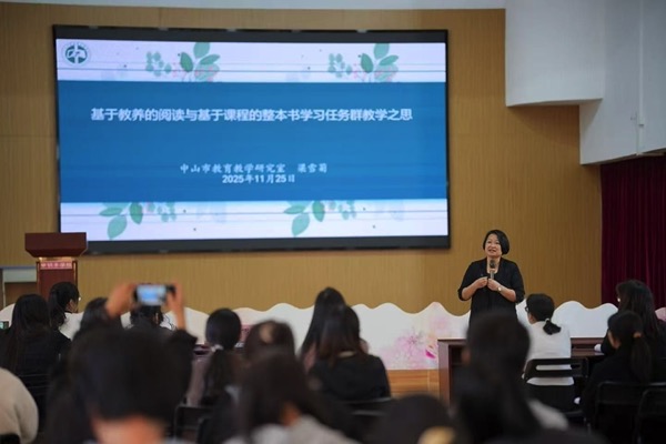 梁雪菊在进行阅读教学专题讲座。通讯员供图
